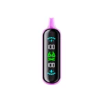 The full screen display provides crucial information at a glance. It shows battery percentage, e-liquid levels, power mode, and puff count, ensuring users are always informed about the device’s status. This feature enhances user experience by allowing them to monitor their usage and plan recharges or refills accordingly, preventing unexpected interruptions.